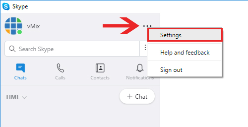 Open Skype and click on the 3 dot menu button at the top left. Then select Settings.
